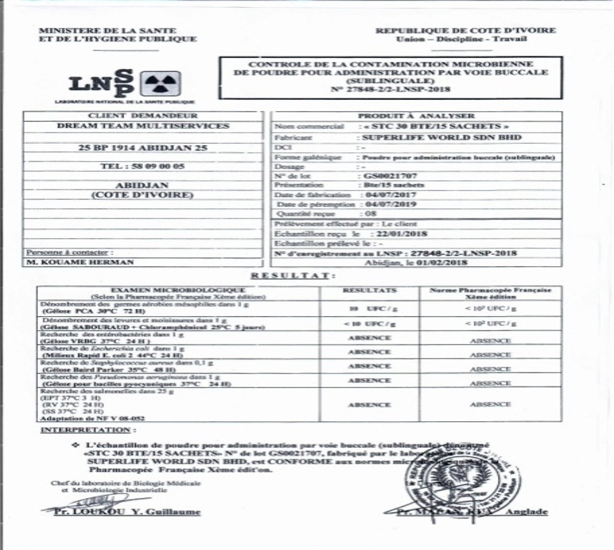 TOUS LES PRODUITS SUPERLIFES SONT CERTIFIES ET REPRESENTES DANS PLUS DE 40 PAYS